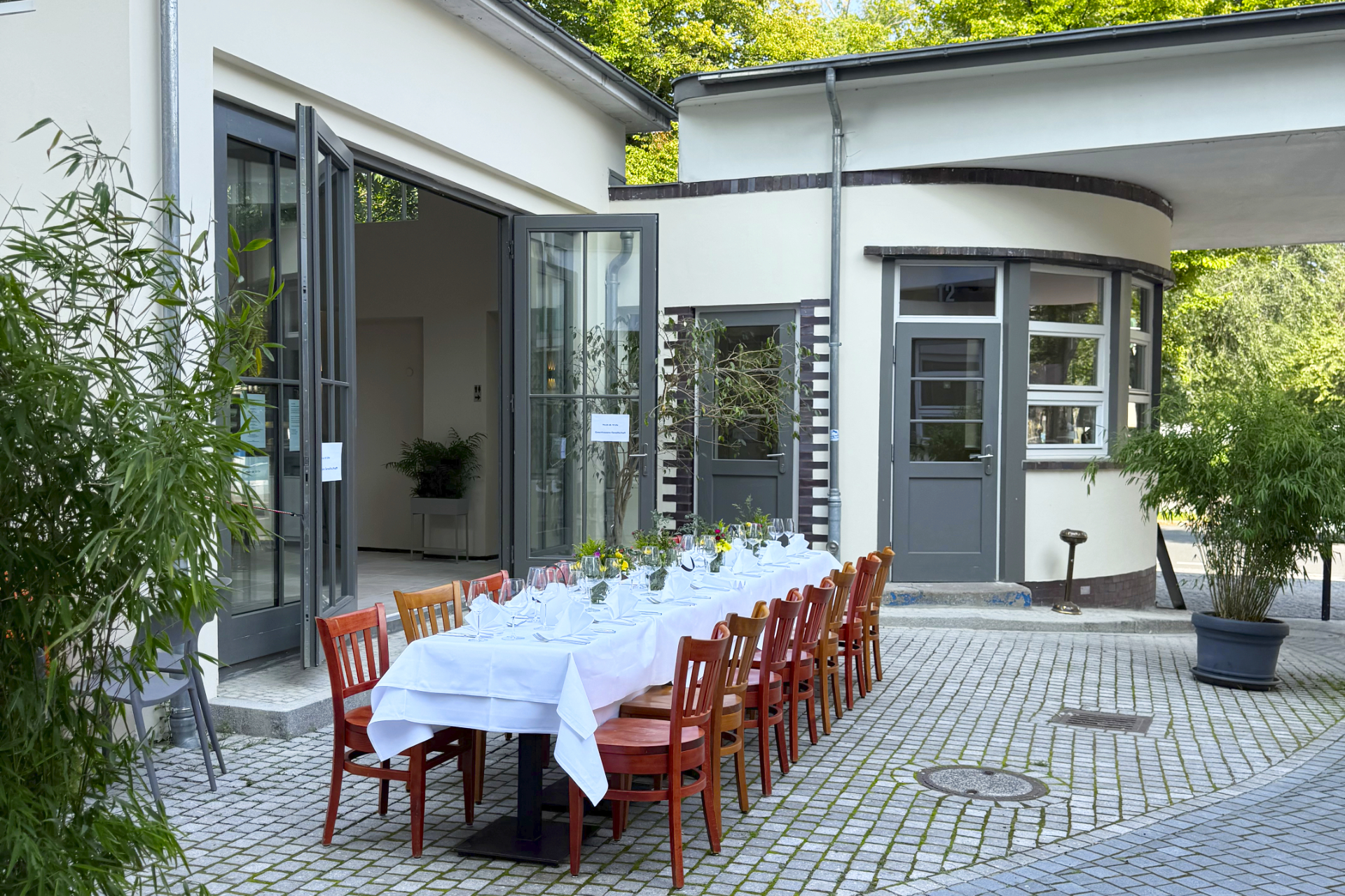 Im Tankstellenbereich der denkmalgeschützten Holtzendorff-Garage von 1929 haben wir einen einladenden Ort geschaffen, an dem Freunde und Familie zusammenkommen und sich wohlfühlen können.